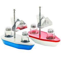 30838 (code) Αλατοπίπερο Καραβάκι Σετ για ξεχωριστή παρουσίαση, βαμμένο στα 2/3 στο χρώμα της επιλογή σας στην σκάφη και το κατάστρωμα. Διαθέσιμα χρώματα μπλέ, γαλάζιο, λευκό, κόκκινο και σε συνδυασμό αυτών Ελληνικής Κατασκευής Υλικό: Ανοξείδωτο 18/10 (καπάκια γυαλιού AISI 430)...