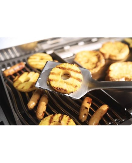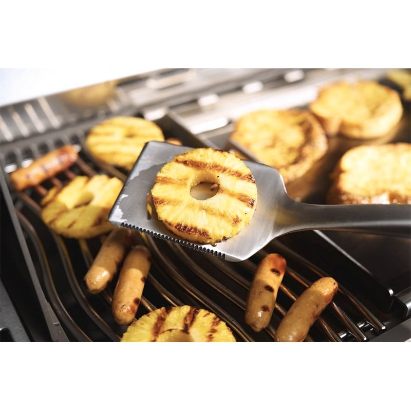 Η Premium Σπάτουλα της Napoleon (κωδ.: GATL007) είναι το εργαλείο που χρειάζεστε για σίγουρες κινήσεις και τέλεια αποτελέσματα σε κάθε ψήσιμο. Ο σχεδιασμός της με τις ειδικά διαμορφωμένες άκρες επιτρέπει να γλιστρά με ευκολία κάτω από το φαγητό, προσφέροντας ευελιξία και άνεση. Από λεπτά φιλέτα μέχρι burgers, ανταποκρίνεται με ακρίβεια και αξιοπιστία. Η στιβαρή κατασκευή από ανοξείδωτο ατσάλι και η αντιολισθητική εργονομική λαβή εξασφαλίζουν σταθερότητα και διάρκεια στον χρόνο. Το μεταλλικό άγκιστρο ανάρτησης, που λειτουργεί και ως ανοιχτήρι, προσθέτει έξτρα πρακτικότητα, κρατώντας το εργαλείο (και την μπύρα σας) πάντα στη διάθεση σας.