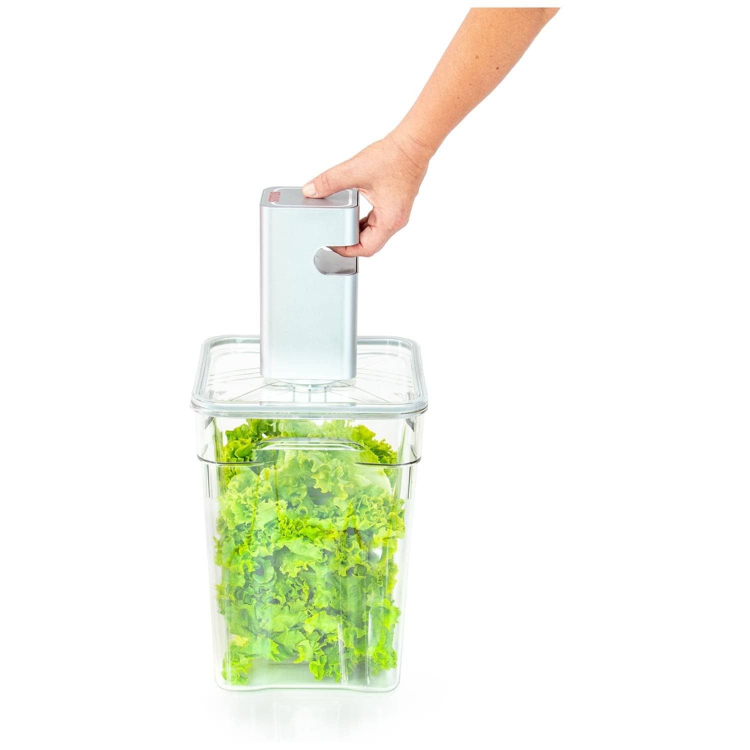 - Με ταχύτητα αντλίας 24 λίτρα ανά λεπτό, ο αέρας αφαιρείται από τα επαγγελματικά δοχεία Gastro σε λίγα δευτερόλεπτα.