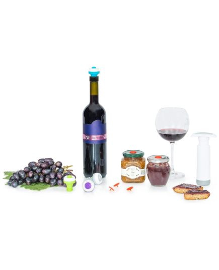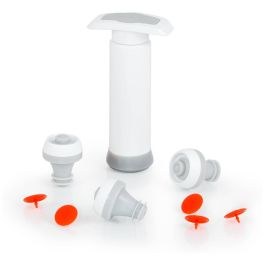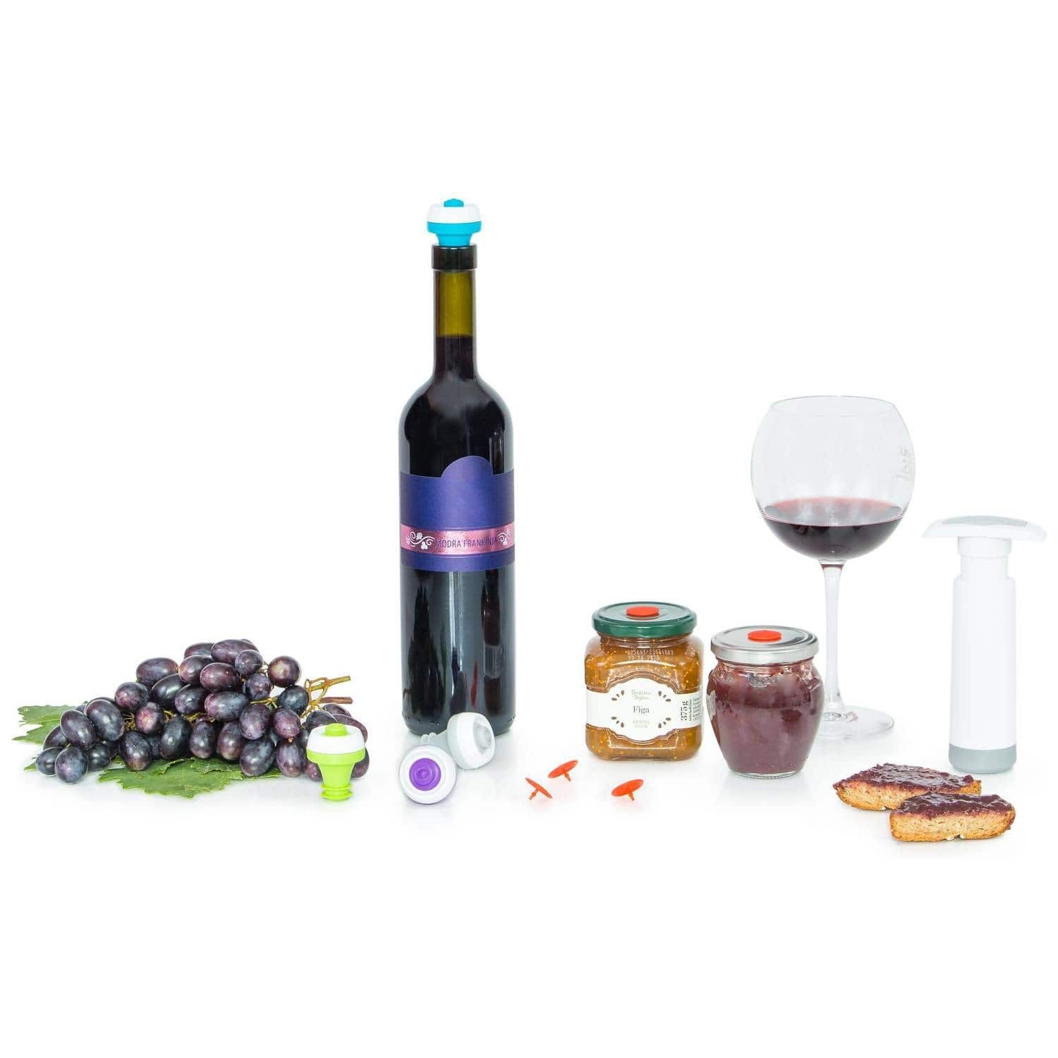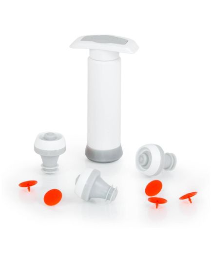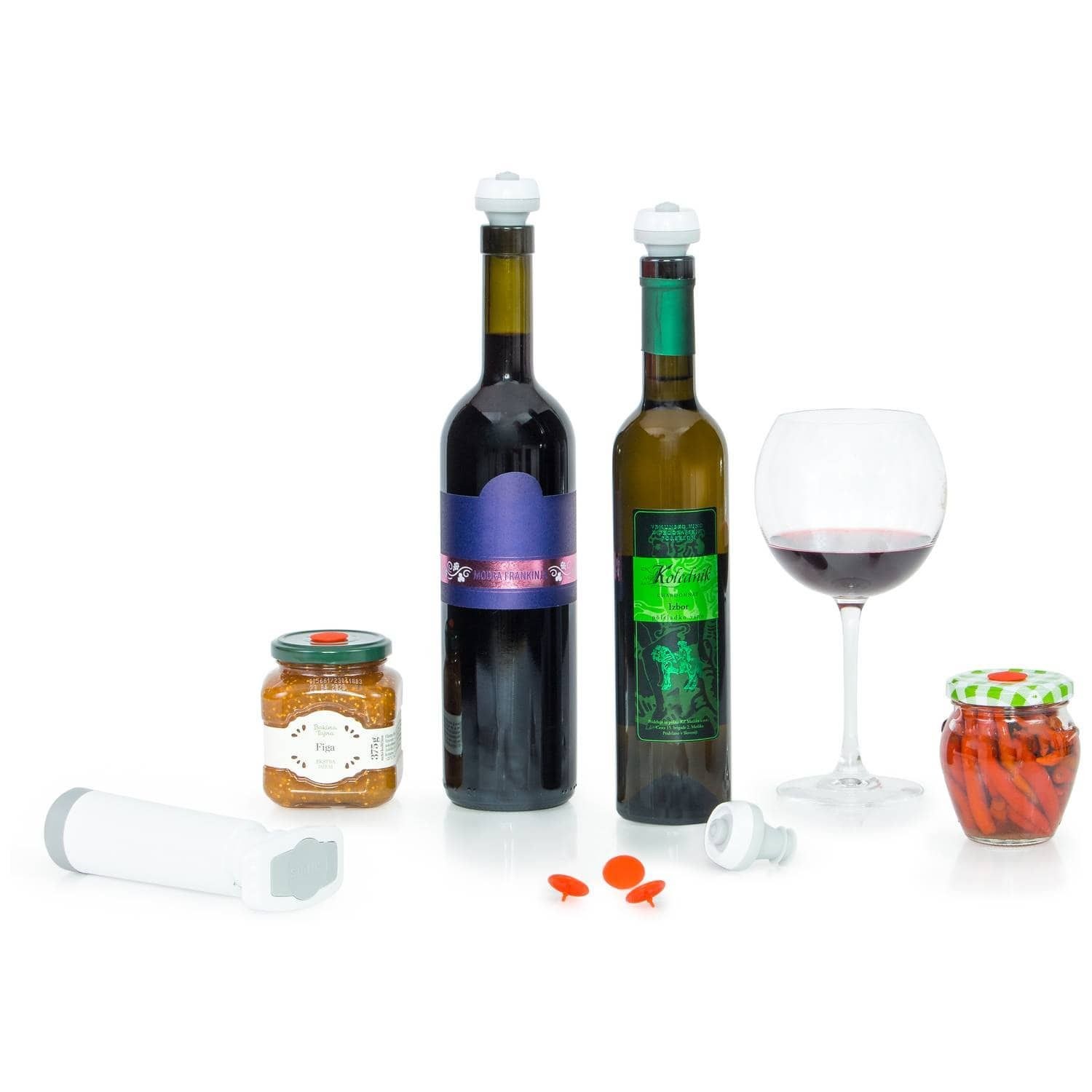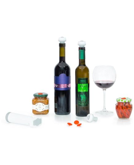• Οι βαλβίδες και τα πώματα μπουκαλιού μπορούν να επαναχρησιμοποιηθούν ξανά και ξανά*Το σετ αποτελείται από 1 αντλία και 5 βαλβίδες φύλαξης τροφίμων σε κενό αέρος και 3 πώματα κρασιού.