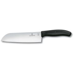 50609 (code) Μαχαίρι Santoku 17cm μαύρη λαβή συσκ δώρου Swiss Classic 6.8503.17G Victorinox Το μαχαίρι Santoku της Ελβετικής εταιρίας Victorinox , είναι το μαχαίρι γενικής χρήσης που στα γιαπωνέζικα σημαίνει "τρεις αρετές", αφού μπορεί να χρησιμοποιηθεί για κρέας, ψάρι, και λαχανικά. Η μύτη...