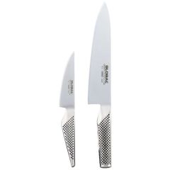 Κληρονόμοι της μεγάλης παράδοσης των Ιαπώνων σαμουράι, τα μαχαίρια Global αποτελούν σημείο αναφοράς στον τομέα της γαστρονομίας. Αυτό το σετ είναι ιδανικό για επαγγελματική ή οικιακή καθημερινή χρήση. Περιλαμβάνει τα εξής 2 μαχαίρια: Μαχαίρι κουζίνας GS-1:  Μικρό μαχαίρι κουζίνας με λεπίδα...