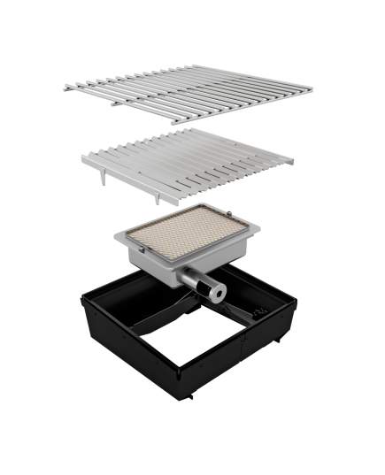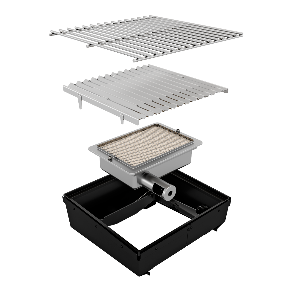 - Blazing Zone Plus: κεραμικός καυστήρας υψηλής απόδοσης με θερμοκρασίες έως 900°C, με πλέγμα σε δύο ύψη για αργό ή γρήγορο ψήσιμο