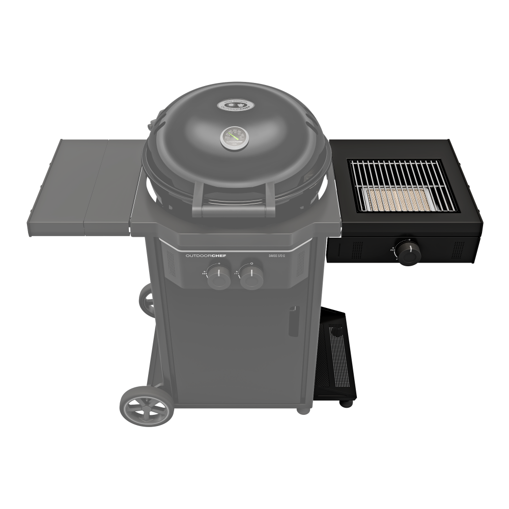 Το Outdoorchef Blazing Zone Kit Plus είναι η ιδανική επέκταση για τις ψησταριές Davos 570 G PRO και Davos 570 G, προσφέροντας κεραμικό καυστήρα υψηλής απόδοσης με εύρος θερμοκρασίας 200–900°C για απόλυτο έλεγχο και επαγγελματικό αποτέλεσμα.