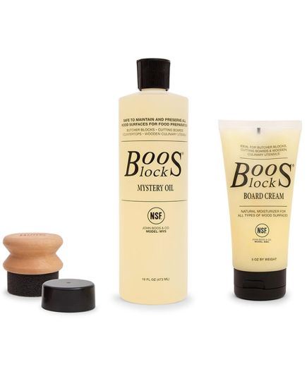 Το σετ BB-66 Boos Block περιλαμβάνει τρία βασικά στοιχεία συντήρησης: Mystery Oil, Board Cream και στρογγυλό applicator. Σχεδιάστηκε για να προσφέρει πλήρη φροντίδα σε σανίδες κοπής, butcher blocks και ξύλινους πάγκους, μέσω ενός εύκολου και σωστά δομημένου τρόπου εφαρμογής.