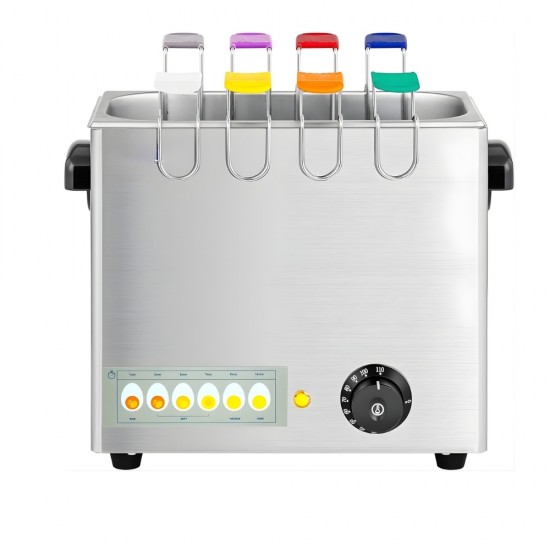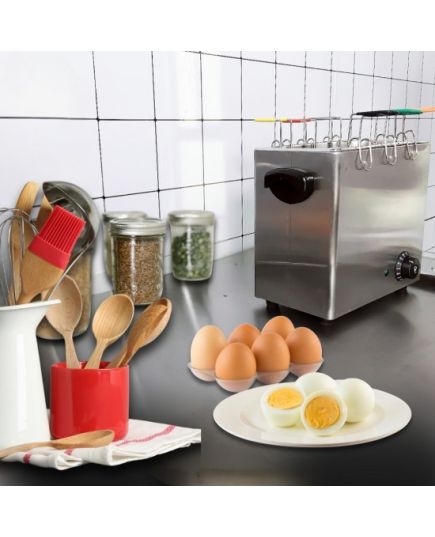 Επαγγελματικός βραστήρας αυγών για μπουφέ ξενοδοχείων και χώρους εστίασης που απαιτούν ταχύτητα και αξιοπιστία. Ανθεκτική κατασκευή από ανοξείδωτο ατσάλι που εξασφαλίζει μέγιστη υγιεινή και μακροχρόνια χρήση. Η ρύθμιση της θερμοκρασίας γίνεται με ακρίβεια μέσω εργονομικού διακόπτη-θερμοστάτη, με εύρος από 30°C έως 110°C, επιτρέποντας το τέλειο μαγείρεμα κάθε φορά. Διαθέτει 8 χρωματιστές βάσεις βρασμού, που επιτρέπουν στους πελάτες ή το προσωπικό να ξεχωρίζουν εύκολα τα αυγά τους. Επιπλέον, τα αντιολισθητικά πόδια εγγυώνται απόλυτη σταθερότητα και ασφάλεια κατά τη λειτουργία πάνω στον πάγκο εργασίας.