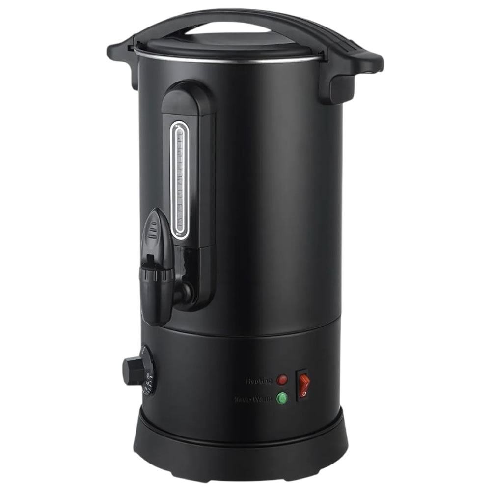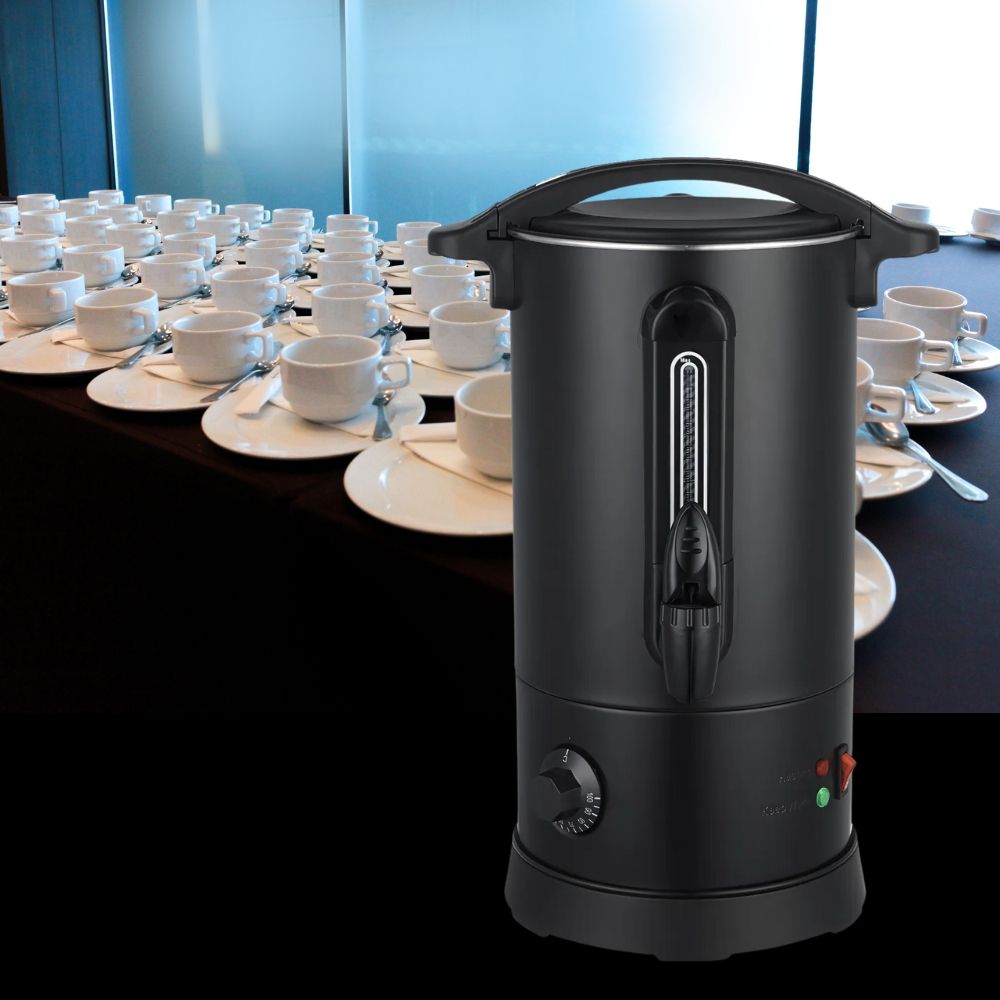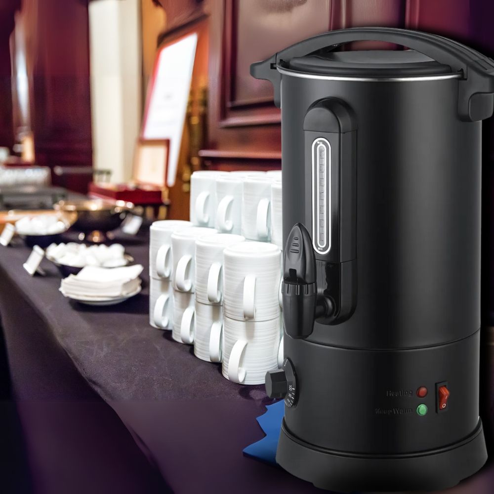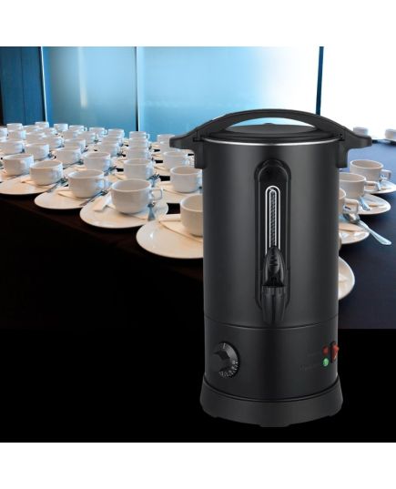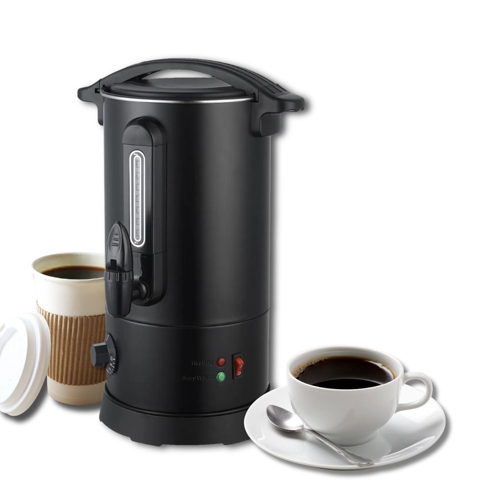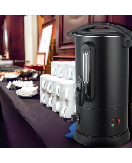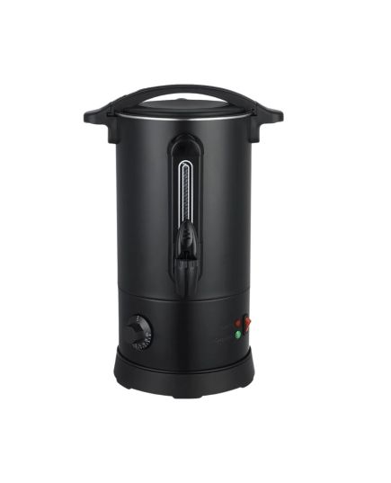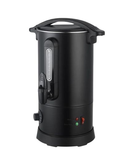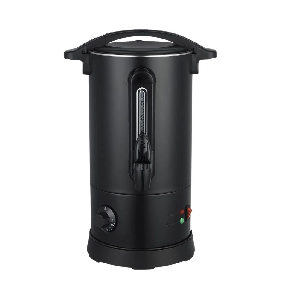 Κομψός, μαύρος βραστήρας για καφέ που συνδυάζει την ανθεκτικότητα με τη λειτουργικότητα, προσφέροντας μια ιδανική λύση για τη θέρμανση και διατήρηση του καφέ. Το σώμα, το εσωτερικό και η βάση του είναι κατασκευασμένα από υψηλής ποιότητας ανοξείδωτο χάλυβα SS304, εξασφαλίζοντας μακροζωία και ασφάλεια. Με πάχος boiler 0.45mm, ο βραστήρας είναι στιβαρός, ενώ η λαβή από θερμοανθεκτικό πλαστικό ABS προσφέρει ασφαλές και άνετο κράτημα. Διαθέτει οπτικό μετρητή νερού και πρακτική βρύση για εύκολο σερβίρισμα. Ο διακόπτης On/Off προστατεύεται από λαστιχένιο κάλυμμα, ενισχύοντας την ασφάλεια κατά τη χρήση. Το ευέλικτο εύρος θερμοκρασίας, ρυθμιζόμενο από 30°C έως 100°C, τον καθιστά κατάλληλο τόσο για ζεστό καφέ όσο και για άλλες χρήσεις. Περιλαμβάνει επίσης δείκτη στάθμης και βύσμα VDE, ενώ ανταποκρίνεται στα ευρωπαϊκά πρότυπα ασφαλείας. Αυτός ο βραστήρας είναι ένα απαραίτητο, αξιόπιστο εργαλείο για κάθε κουζίνα ή χώρο εστίασης.