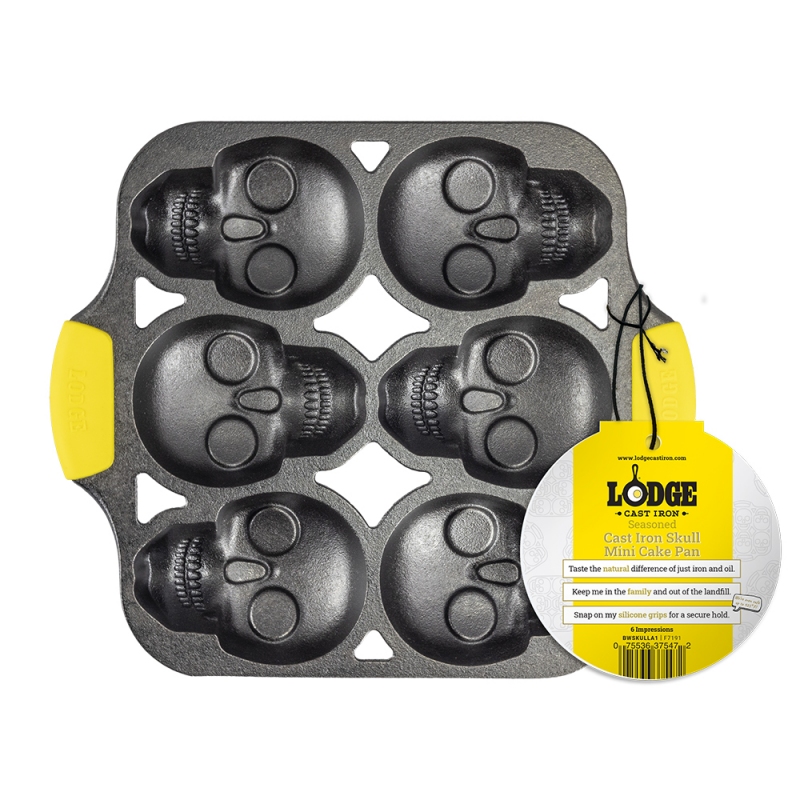 Ψήστε και διακοσμήστε mini skulls από ζάχαρη, σκελετούς, σημαίες πειρατών και πολλά άλλα με αυτό το μοναδικό bakeware κομμάτι της Lodge. Από το Halloween, την Dia de los Muertos, μέχρι την Ημέρα του Παιχνιδιού, αυτό το σκεύος σερβίρει διασκέδαση και χαρά σε γιορτές. Με 100% Seasoned επιφάνεια, που δεν βαθουλώνει, λυγίζει ή παραμορφώνεται. Φέρτε κάτι αξέχαστο (και γλυκά τρομακτικό) την επόμενη φορά που θα μαζευτείτε με τους αγαπημένους σας. Με 2 κίτρινες λαβές σιλικόνης που κουμπώνουν για ασφαλές κράτημα κατά τη μεταφορά του σκεύους. Οι λαβές μπαίνουν με ασφάλεια στον φούρνο έως τους 219°C.