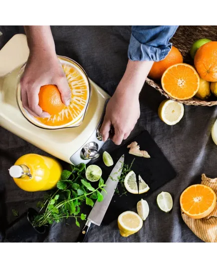Με τον λεμονοστίφτη της Ankarsrum, το στύψιμο των φρούτων είναι τόσο αποτελεσματικό όσο και εύκολο. Απλώς συνδέστε το Citrus Press στην Assistent Original και αφήστε το μηχάνημα να κάνει τη δουλειά για εσάς. Είτε στύβετε λάιμ για μια συνταγή είτε σερβίρετε φρέσκο χυμό πορτοκαλιού για πρωινό, θα πάρετε τον μέγιστο χυμό με ελάχιστη προσπάθεια. Ιδανικό για τα περισσότερα εσπεριδοειδή, συμπεριλαμβανομένων των πορτοκαλιών, των λεμονιών, των λάιμ και των γκρέιπφρουτ!