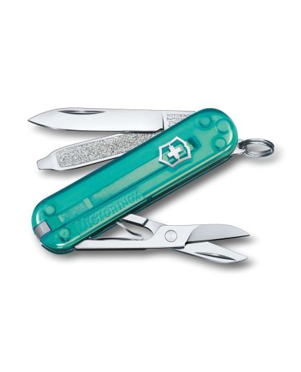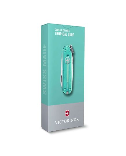 Classic SD ελβετικός σουγιάς 58mm 7 λειτουργίες τιρκουάζ διαφανής tropical surf -0.6223.T24G- Victorinox