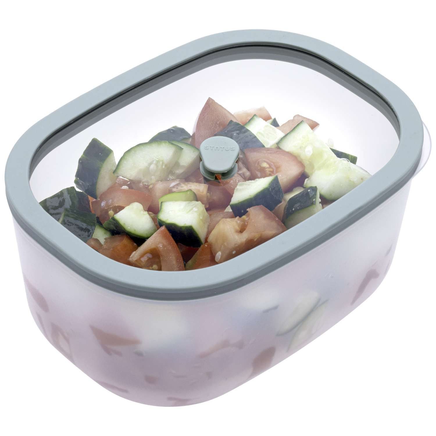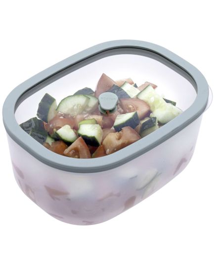Δοχείο συντήρησης τροφίμων Fresko - Η απόλυτη λύση για αποθήκευση τροφίμων με φρεσκάδα που διαρκεί! Τα δοχεία κενού της σειράς Fresko με γυάλινα καπάκια είναι ιδανικά για αποθήκευση τροφίμων στο σπίτι ή για να τα πάρετε μαζί σας σε κάθε περίσταση. Κατασκευασμένα από ελαφρύ, αλλά πολύ ανθεκτικό υλικό PP, διασφαλίζουν τη φρεσκάδα των τροφίμων σας με αποδοτικό και πρακτικό τρόπο. Για την αφαίρεση του αέρα απαιτείται η χρήση σχετικής αντλίας χειρός ή συσκευής συντήρησης τροφίμων σε κενό αέρος (Home 280 ή SV2000) οι οποίες διατίθενται ξεχωριστά. Τα δοχεία αεροστεγούς φύλαξης είναι απαραίτητα σε κάθε κουζίνα. Προορίζονται για την φυσική αποθήκευση των τροφίμων σας αλλά και την παράταση της ζωής του ωμού αλλά και του μαγειρεμένου φαγητού χωρίς να χάνεται η ποιότητα του. Επεκτείνετε τη "διάρκεια ζωής" των τροφίμων σας εως και 4 φορές περισσότερο, αφαιρέστε τον αέρα και διατηρήστε την ποιότητα των τροφίμων σας! Χρησιμοποιήστε το δοχείο αεροστεγούς φύλαξης 1.4 λτ. της STATUS για: αλλαντικά και κάθε είδους τυριού φρέσκο κρέας και αυγά φρούτα και λαχανικά Χρήση Αφαιρέστε τον αέρα από το δοχείο αεροστεγούς φύλαξης χρησιμοποιώντας την αντλία ή τη συσκευή συντήρησης τροφίμων σε κενό αέρος (Home 280 ή SV2000) Για να ανοίξετε το δοχείο πατήστε τη βαλβίδα στο κέντρο του δοχείου Μαρινάρισμα Το κρέας, τα πουλερικά και το ψάρι μαρινάρονται σε μερικά λεπτά στα δοχεία της STATUS αφού η διαδικασία του αεροστεγούς κλεισίματος και της αρνητικής πίεσης που δημιουργείται μέσα στα δοχεία επιτρέπει στη μαρινάρα να εισχωρήσει στο φαγητό πολύ πιο εύκολα και γρήγορα, έτσι, η οι γεύσεις της μαρινάρας έχουν πιο ωραία, φρέσκια και έντονη γεύση. Το σετ σας επιτρέπει να μαρινάρετε οποιοδήποτε κρέας, εύκολα & γρήγορα ενώ η δημιουργία vacuum μέσω της αντλίας στο εσωτερικό του δοχείου διευκολύνει τη διαδικασία μαριναρίσματος και σας προσφέρει ενα υγιεινό γευστικό γεύμα με όλα του τα θρεπτικά συστατικά! Απλά βάλτε το αγαπημένο σας φαγητό μέσα στο δοχείο αεροστεγούς φύλαξης της STATUS, προσθέστε τα υλικά και τα μπαχαρικά στα οποία θέλετε να μαριναριστεί και έπειτα χρησιμοποιήστε την αντλία! Καθαρισμός Τα δοχεία αεροστεγούς φύλαξης της STATUS πρέπει να καθαριστούν πριν από τη 1η χρήση. Μπορείτε να τα πλύνετε είτε στο χέρι είτε στο πλυντήριο πιάτων. Ασφάλεια στη μεταφορά υγρών Το μοναδικό καπάκι του δοχείου εμποδίζει τις διαρροές, καθιστώντας το ιδανικό για τη μεταφορά υγρών. Οικονομία Παρατείνοντας τη διάρκεια ζωής των τροφίμων περιορίζεται η σπατάλη, μειώνονται τα έξοδα στα ψώνια και στο φαγητό απο έξω, ενώ εξασφαλίζεται επιπλέον κέρδος από τις οικονομικότερες, μεγαλύτερες συσκευασίες. *Όλα τα δοχεία της STATUS είναι BPA free Διαστάσεις: 14 x 19 x 8 εκατ.