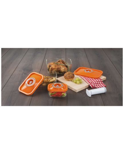 Δοχείο Συντήρησης Vacuum Γυάλινο Ορθογώνιο 1.5lt Πορτοκαλί - 181046 - STATUS
