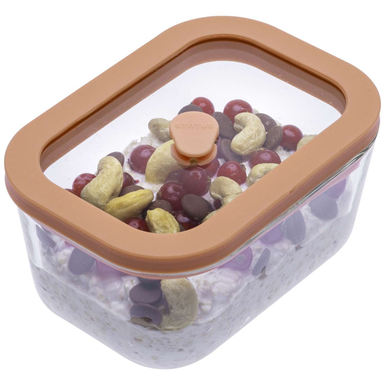 - Επεκτείνετε τη "διάρκεια ζωής" των τροφίμων σας εως και 4 φορές περισσότερο, αφαιρέστε τον αέρα και διατηρήστε την ποιότητα των τροφίμων σας! Χρησιμοποιήστε το δοχείο αεροστεγούς φύλαξης 500 ml της STATUS για: γλυκές και αλμυρές νιφάδες φρουτοσαλάτες σαλάτες Χρήση Αφαιρέστε τον αέρα από το δοχείο αεροστεγούς φύλαξης χρησιμοποιώντας την αντλία ή τη συσκευή συντήρησης τροφίμων σε κενό αέρος (Home 280 ή SV2000) Για να ανοίξετε το δοχείο πατήστε τη βαλβίδα στο κέντρο του δοχείου Μαρινάρισμα Το κρέας, τα πουλερικά και το ψάρι μαρινάρονται σε μερικά λεπτά στα δοχεία της STATUS αφού η διαδικασία του αεροστεγούς κλεισίματος και της αρνητικής πίεσης που δημιουργείται μέσα στα δοχεία επιτρέπει στη μαρινάρα να εισχωρήσει στο φαγητό πολύ πιο εύκολα και γρήγορα, έτσι, η οι γεύσεις της μαρινάρας έχουν πιο ωραία, φρέσκια και έντονη γεύση