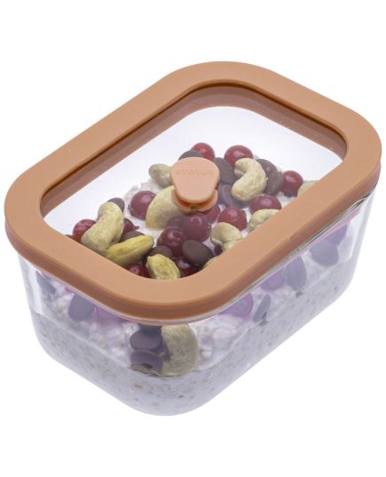 Δοχείο συντήρησης τροφίμων Fresko - Η απόλυτη λύση για αποθήκευση τροφίμων με φρεσκάδα που διαρκεί! Τα δοχεία κενού της σειράς Fresko με γυάλινα καπάκια είναι ιδανικά για αποθήκευση τροφίμων στο σπίτι ή για να τα πάρετε μαζί σας σε κάθε περίσταση. Κατασκευασμένα από ανθεκτικό γυαλί, διασφαλίζουν τη φρεσκάδα των τροφίμων σας με αποδοτικό και πρακτικό τρόπο. Για την αφαίρεση του αέρα απαιτείται η χρήση σχετικής αντλίας χειρός ή συσκευής συντήρησης τροφίμων σε κενό αέρος (Home 280 ή SV2000) οι οποίες διατίθενται ξεχωριστά. Τα δοχεία αεροστεγούς φύλαξης είναι απαραίτητα σε κάθε κουζίνα. Προορίζονται για την φυσική αποθήκευση των τροφίμων σας αλλά και την παράταση της ζωής του ωμού αλλά και του μαγειρεμένου φαγητού χωρίς να χάνεται η ποιότητα του. Επεκτείνετε τη "διάρκεια ζωής" των τροφίμων σας εως και 4 φορές περισσότερο, αφαιρέστε τον αέρα και διατηρήστε την ποιότητα των τροφίμων σας! Χρησιμοποιήστε το δοχείο αεροστεγούς φύλαξης 500 ml της STATUS για: γλυκές και αλμυρές νιφάδες φρουτοσαλάτες σαλάτες Χρήση Αφαιρέστε τον αέρα από το δοχείο αεροστεγούς φύλαξης χρησιμοποιώντας την αντλία ή τη συσκευή συντήρησης τροφίμων σε κενό αέρος (Home 280 ή SV2000) Για να ανοίξετε το δοχείο πατήστε τη βαλβίδα στο κέντρο του δοχείου Μαρινάρισμα Το κρέας, τα πουλερικά και το ψάρι μαρινάρονται σε μερικά λεπτά στα δοχεία της STATUS αφού η διαδικασία του αεροστεγούς κλεισίματος και της αρνητικής πίεσης που δημιουργείται μέσα στα δοχεία επιτρέπει στη μαρινάρα να εισχωρήσει στο φαγητό πολύ πιο εύκολα και γρήγορα, έτσι, η οι γεύσεις της μαρινάρας έχουν πιο ωραία, φρέσκια και έντονη γεύση. Το σετ σας επιτρέπει να μαρινάρετε οποιοδήποτε κρέας, εύκολα & γρήγορα ενώ η δημιουργία vacuum μέσω της αντλίας στο εσωτερικό του δοχείου διευκολύνει τη διαδικασία μαριναρίσματος και σας προσφέρει ενα υγιεινό γευστικό γεύμα με όλα του τα θρεπτικά συστατικά! Απλά βάλτε το αγαπημένο σας φαγητό μέσα στο δοχείο αεροστεγούς φύλαξης της STATUS, προσθέστε τα υλικά και τα μπαχαρικά στα οποία θέλετε να μαριναριστεί και έπειτα χρησιμοποιήστε την αντλία! Καθαρισμός Τα δοχεία αεροστεγούς φύλαξης της STATUS πρέπει να καθαριστούν πριν από τη 1η χρήση. Μπορείτε να τα πλύνετε είτε στο χέρι είτε στο πλυντήριο πιάτων. Ασφάλεια στη μεταφορά υγρών Το μοναδικό καπάκι του δοχείου εμποδίζει τις διαρροές, καθιστώντας το ιδανικό για τη μεταφορά υγρών. Οικονομία Παρατείνοντας τη διάρκεια ζωής των τροφίμων περιορίζεται η σπατάλη, μειώνονται τα έξοδα στα ψώνια και στο φαγητό απο έξω, ενώ εξασφαλίζεται επιπλέον κέρδος από τις οικονομικότερες, μεγαλύτερες συσκευασίες. *Όλα τα δοχεία της STATUS είναι BPA free Διαστάσεις: 10 x 14 x 5 εκατ.