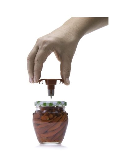 • Απλά τρυπάτε το καπάκι με το ειδικό εξάρτημα, τοποθετείτε τη βαλδίδα και έπειτα αφαιρείτε τον αέρα.