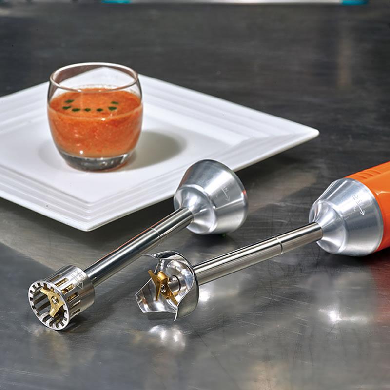 41591 (code) Εξάρτημα Blender - Ομογενοποιητής σειράς Dynamix Ref: AC560 Dynamic Γαλλίας. The blender / homogenizer accessory allows to pulverize the ingredients (fibers, fishbone), to mix, to smooth, to homogenize your ice creams and sorbets or to emulsify your sauces and emulsions . It is also suitable for modified textured preparations, pancake batter, veloutes, soups, bread soups and soups (fish soup, dehydrated soup), legume purees, gelified water, juices, smoothies and milkshakes, coulis, creams (fruit or vegetables), compotes and fruit marmalades, brine (cold powder dispersion).