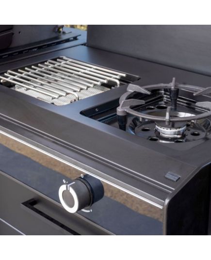 Η καρδιά του συστήματος, η ψησταριά αερίου HEAT X-415 RB K, ενσωματώνει τέσσερις διπλούς καυστήρες από ανοξείδωτο ατσάλι, πίσω καυστήρα και ρυθμιστή θερμοκρασίας HEAT, προσφέροντας εύρος θερμοκρασίας από 80°C έως 400°C, κατάλληλο για κάθε είδος παρασκευής - από slow cooking έως γρήγορο σοτάρισμα και BBQ.