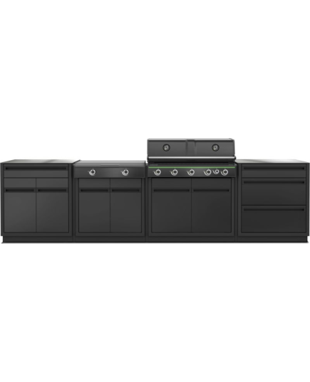 Όλες οι μονάδες είναι κατασκευασμένες από ανοξείδωτο χάλυβα με επίστρωση πούδρας, εξαιρετικά ανθεκτικές στις καιρικές συνθήκες, με πάγκους από HPL και διακόσμηση ξύλου. Οι αποθηκευτικοί χώροι διαθέτουν συρτάρια και πόρτες με μηχανισμούς soft-close, καθώς και θέσεις για φιάλες υγραερίου έως 11 κιλών.