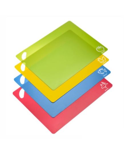 - Υγιεινή στην Κουζίνα: Το σετ περιλαμβάνει 4 διαφορετικά χρώματα, επιτρέποντάς σας να αντιστοιχίσετε κάθε χρώμα σε συγκεκριμένο είδος τροφίμου (π.χ. κρέας, ψάρι, λαχανικά). Αυτό αποτρέπει τη διασταυρούμενη μόλυνση (μεταφορά μικροβίων) μεταξύ των τροφίμων.