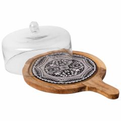 79707 (code) Πλατώ σερβιρίσματος ξύλου/πορσελάνης (Σετ) με χερούλι και γυάλινο καπάκι 36x27x17cm Morocco Black Prestige