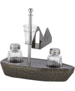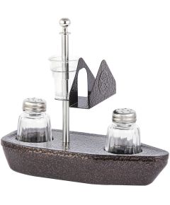 42063 (code) Αλατοπίπερο Καραβάκι 20x8,5x18cm σφυρήλατο καφέ