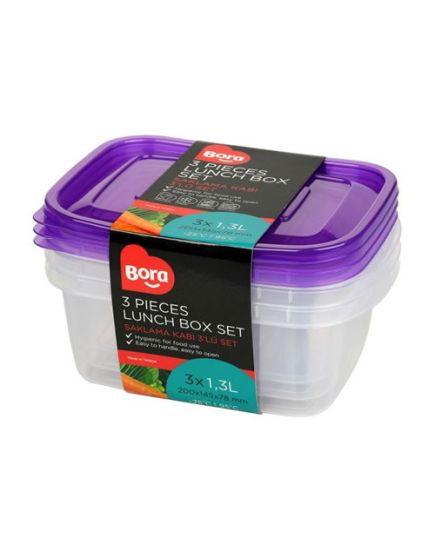 Σετ 3 Ορθογώνια Φαγητοδοχεία Αποθήκευσης Τροφίμων BO536 Bora Plastik | Χωρητικότητας 1,3lt/τεμάχιο