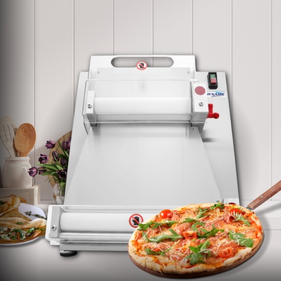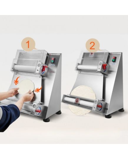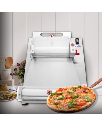 Ηλεκτρικό φορμαριστικό ζύμης για την δημιουργία βάσης για πίτσα. Κατασκευασμένο από ανοξείδωτο ατσάλι για αντοχή στη σκουριά και τη διάβρωση. Με μηχανισμός 390W, δημιουργεί το φύλλο ζύμης για πίτσα και άλλες παρασκευές εύκολα και γρήγορα. Ταχύτητα παραγωγής περίπου 5 δευτερόλεπτα για μια ζύμη.