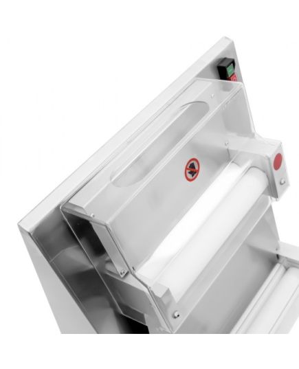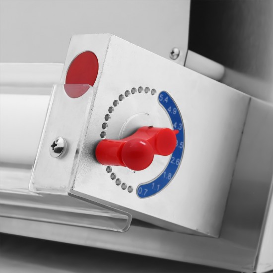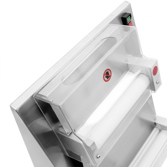 Διαθέτει δύο κουμπιά στο πλάι της μηχανής, που περιστρέφονται για να ρυθμίζουν το πάχος της ζύμης που κυμαίνεται από 10~40cm. Κύλινδροι ρητίνης, κατάλληλοι για τρόφιμα. Υπάρχουν διαφανή προστατευτικά καλύμματα στο εξωτερικό των κυλίνδρων, τα οποία βελτιώνουν αποτελεσματικά την ασφάλεια κατά τη λειτουργία και εμποδίζουν την είσοδο ξένων αντικειμένων στον κύλινδρο. Εύκολο στη λειτουργία, απλά τοποθετείτε τη ζύμη στην επάνω είσοδο του κυλίνδρου και το μηχάνημα θα την ετοιμάσει αυτόματα.