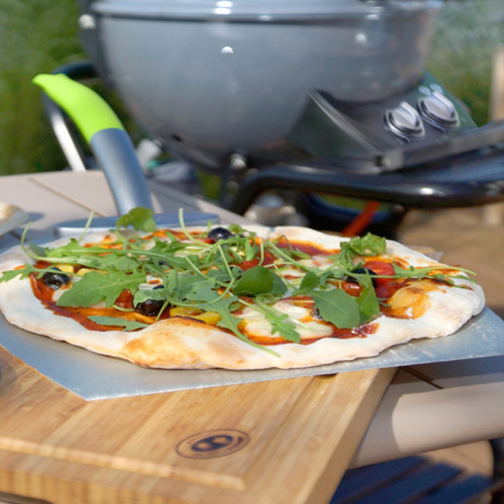 27442 (code) Φτυάρι πίτσας Outdoorchef. Μακρύ φτυάρι για εύκολη και ασφαλή μεταφορά της πίτσας απο και προς την ψησταριά, από αλουμίνιο με λαβή soft-touch. Ιδανικό για όλες τις πέτρες για πίτσα της OUTDOORCHEF.