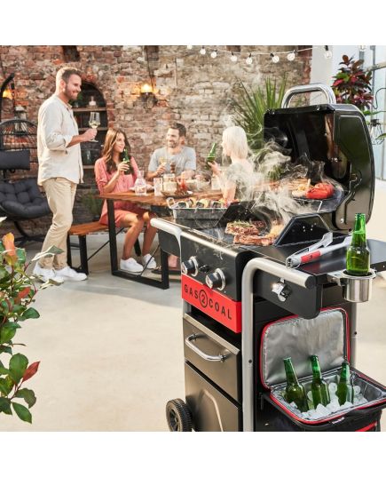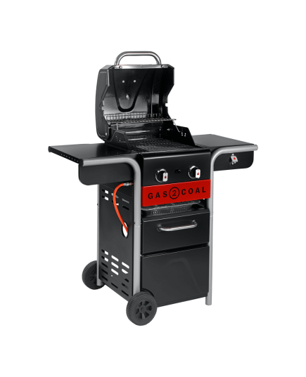Η ψησταριά Gas2Coal® είναι η απάντηση στο διαχρονικό ερώτημα κάρβουνο ή αέριο. Η απάντηση είναι και τα δύο! Η υβριδική αυτή ψησταριά με τρείς κινήσεις του ενός λεπτού, χωρίς εργαλεία, χωρίς αναπτήρες ή προσανάμματα, μπορεί να μετατραπεί από ψησταριά αερίου σε ψησταριά κάρβουνου. Τα άναμμα της ψησταριάς γίνεται με τους ανοξείδωτους καυστήρες κάτω από τα κάρβουνα. Το ταψί των κάρβουνων βοηθά στο ψήσιμο με σταθερή θερμοκρασία χωρίς ανεπιθύμητες αναφλέξεις.