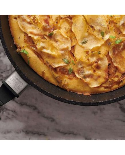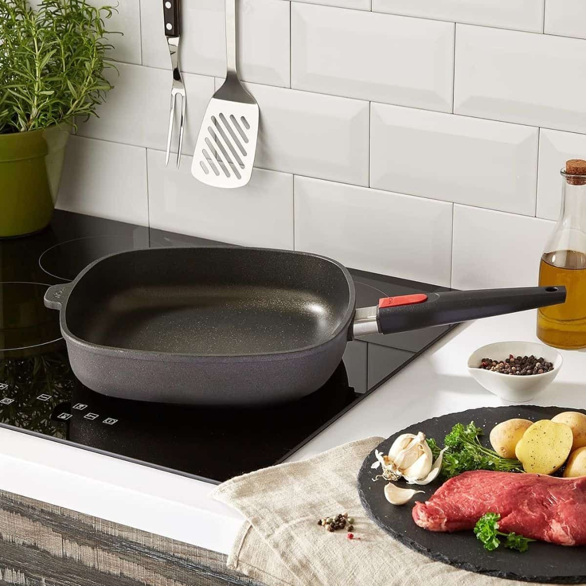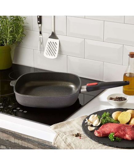 Εξαιρετικά στιβαρή κατασκευή με κορυφαίες θερμικές ιδιότητες, αντικολλητική επιφάνεια με εντυπωσιακές επιδόσεις και αποσπώμενη λαβή για καθημερινή πρακτικότητα.