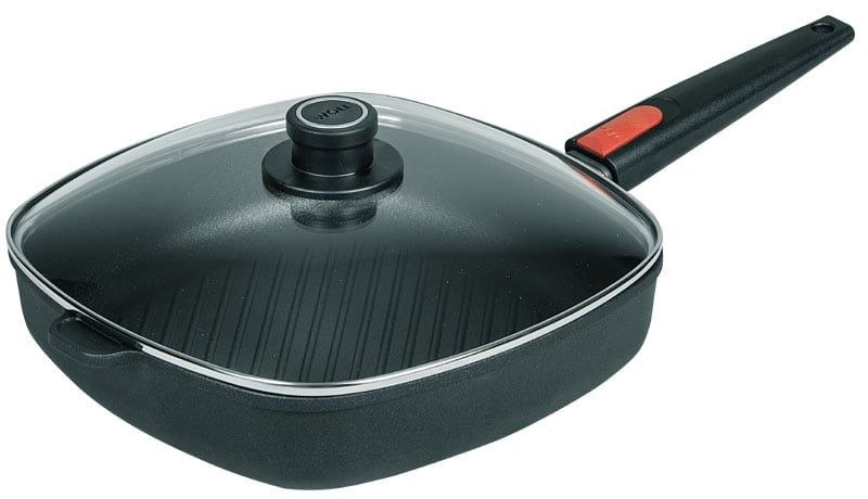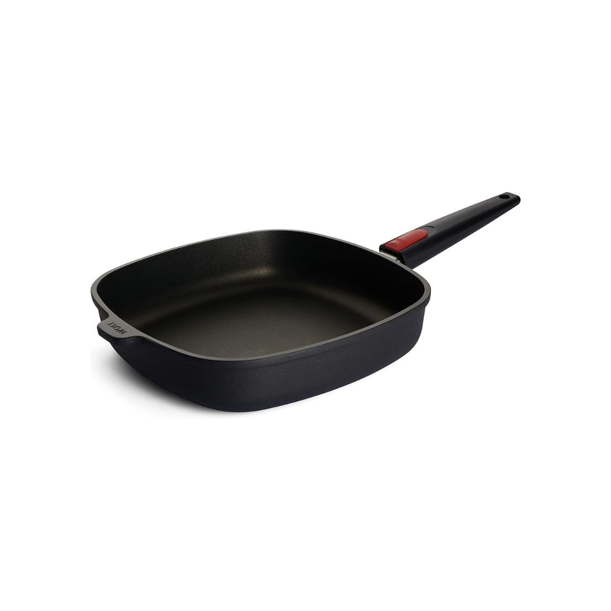 Γκριλιέρα αντικολλητική από χυτό αλουμίνιο με γυάλινο καπάκι και αποσπώμενη λαβή 28x28cm Titanium Nowo -1628-1ILL- WOLL