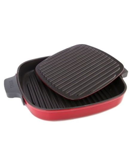 Γκριλιέρα μαντεμένια επισμαλτωμένη με πρέσσα ψησίματος γκρι 28x28cm Carbon Grey Iron -628-2CI-030- WOLL