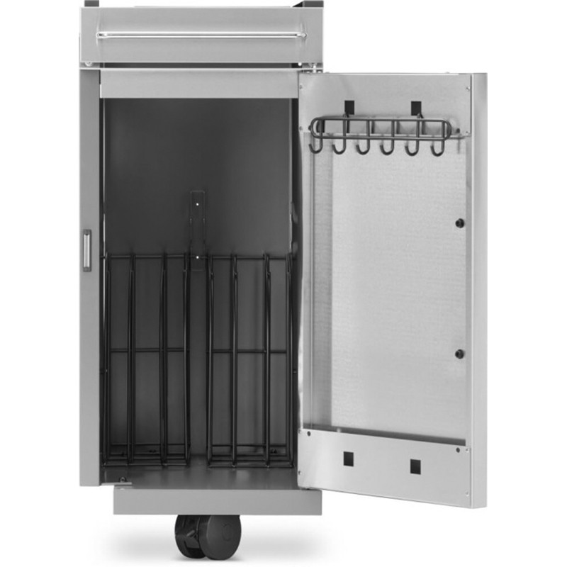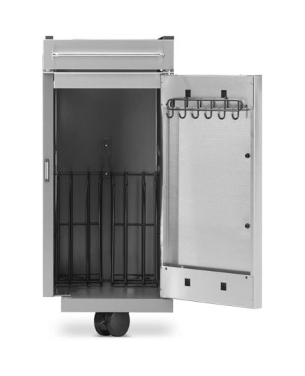 Το εσωτερικό είναι εξοπλισμένο με ενσωματωμένους γάντζους και διαχωριστικό χώρου, ώστε κάθε αντικείμενο να έχει τη θέση του. Το ντουλάπι μπορεί να τοποθετηθεί είτε αριστερά είτε δεξιά της ψησταριάς, προσφέροντας ευελιξία ανάλογα με τις ανάγκες του χώρου σας.