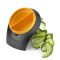 For easy cut vegetable garlands of 6 cm width. For best results set the cutter on its foot and position it with one hand. Use the other hand to stick fruit and vegetable into the cone. Start rotating. An end holder helps to process the end pieces for minimum loss. Hard plastic and stainless steel, 10 x 8,5 x 9 cm, cone O 7,5 cm, hardened stainless steel blade, dish washer safe.