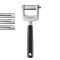 The 3-piece triangle Julienne Cutter set allows you to cut julienne strips as thin as spaghetti, normal size julienne strips or even slices. The cutter set is suitable for all firm vegetable types such as courgettes/zucchini, carrots, aubergines/eggplants, giant white radishes, potatoes and many others. All metal components are made of stainless steel. The blades themselves are made of extra-hard special steel. Dishwasher safe.