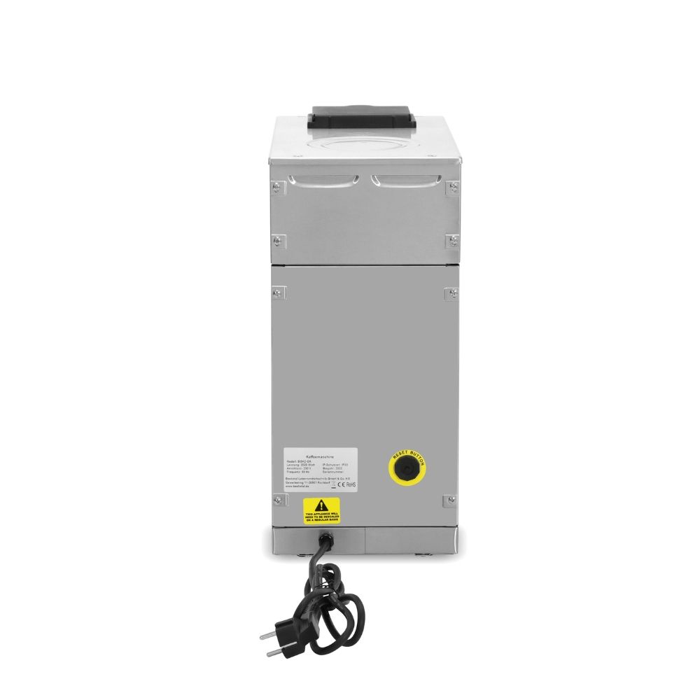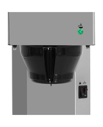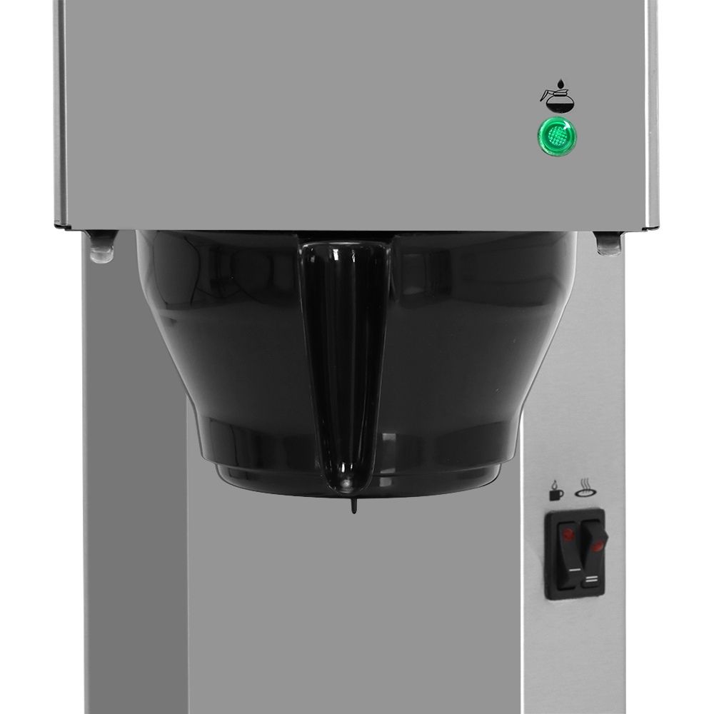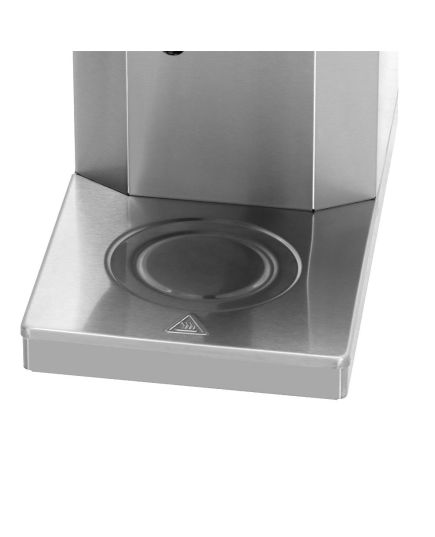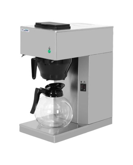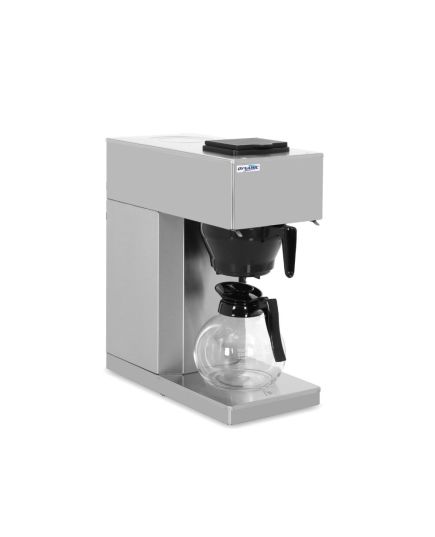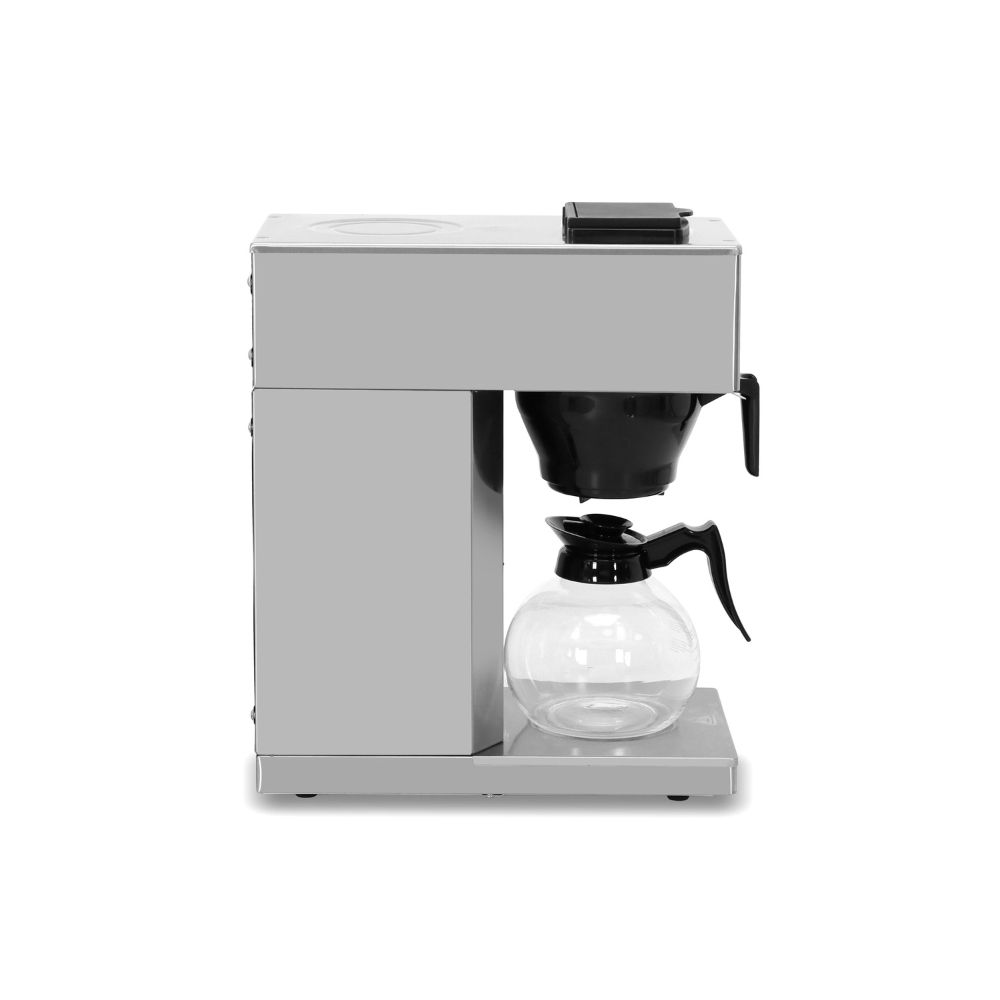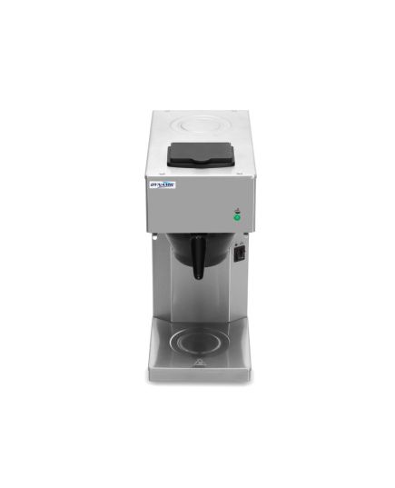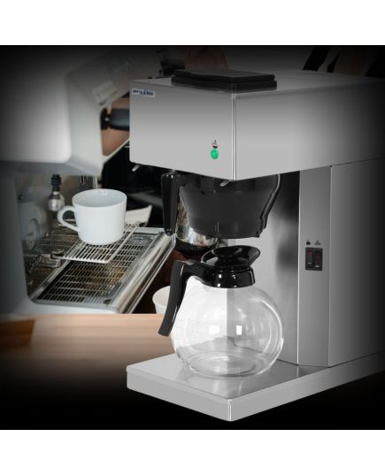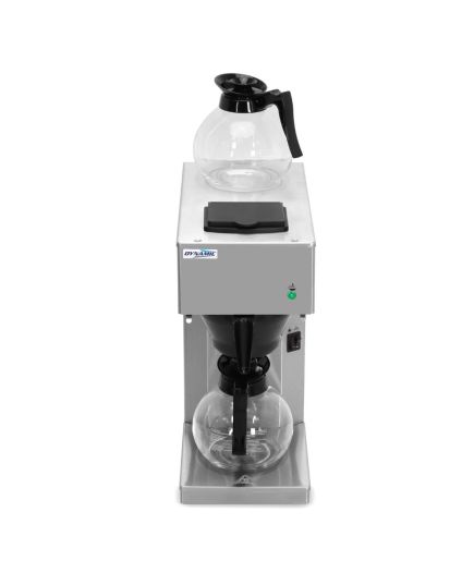 Επαγγελματική μηχανή για την παρασκευή καφέ φίλτρου με 2 γυάλινες κανάτες. Σύστημα ελέγχου θερμοκρασίας με διακοπή στους 105℃. Αυτόματη επαναφορά στους 97℃. Κατασκευή από ανοξείδωτο ατσάλι. Με δύο θερμαντικές πλάκες στην κορυφή και στη βάση. Διαθέτει διακόπτη on/off και ένδειξη παρασκευής. Τριπλή προστασία ασφαλείας. Με δοχείο νερού 2,5L.