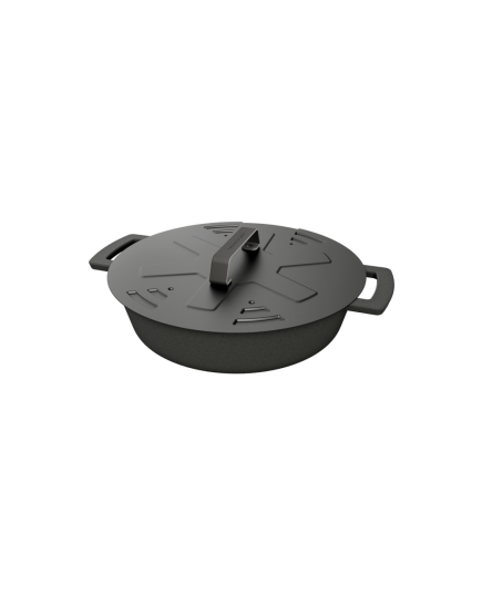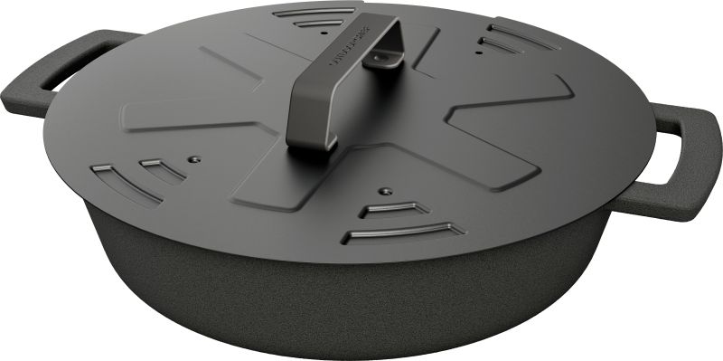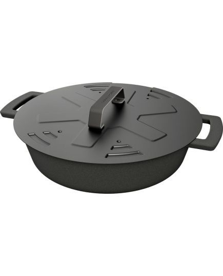 Το Outdoorchef Carbon Steel Lid 4-in-1 14.491.51 είναι ένα πολυλειτουργικό καπάκι από ανθεκτικό carbon steel, με διάμετρο 29,5 cm, που ταιριάζει σε όλα τα σκεύη Outdoorchef διαμέτρου 24-28 cm. Λειτουργεί είτε ως πρακτικό καπάκι, είτε ως splash guard για προστασία από πιτσιλιές, είτε ως καπάκι για braising. Είναι εξαιρετικά ελαφρύ, ανθεκτικό στη θερμότητα και εύκολο στον καθαρισμό.