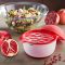 53123 (code) Καθαριστής ροδιού "Buzzer" 5161 Westmark. Το πρακτικό εργαλείο βοηθά στην απομάκρυνση των πολύτιμων σπόρων ροδιού από τον καρπό εύκολα και χωρίς πιτσίλισμα. Πρώτα κόψτε το ρόδι κατά μήκος στα δύο μισά και μετά χαράξτε ελαφρά τις κομμένες επιφάνειες. Στη συνέχεια, τοποθετήστε το μισό με την επιφάνεια κοπής του πυρήνα στραμμένη προς τα κάτω και τοποθετήστε το εύκαμπτο καπάκι πάνω του. Στη συνέχεια, είτε με το χέρι είτε με ένα μεγάλο κουτάλι, χτυπήστε το εύκαμπτο καπάκι για να απελευθερωθούν οι σπόροι από τον καρπό. Μαζεύονται, μαζί με τον χυμό, στο πρακτικό δοχείο συλλογής.