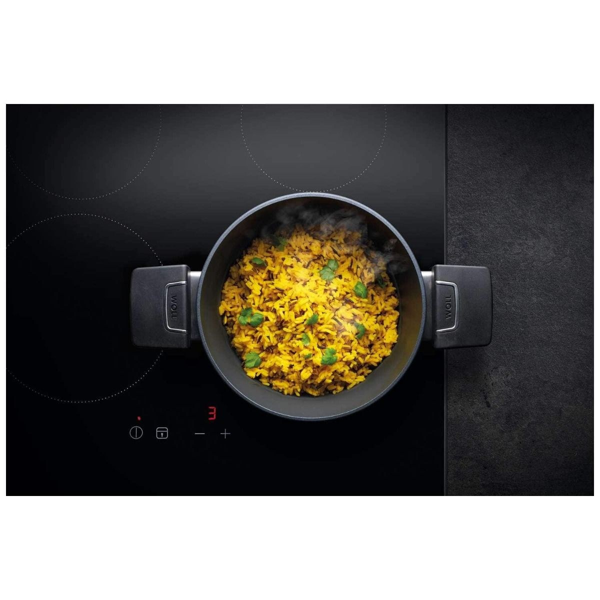 To επαγγελματικής ποιότητας χυτό αλουμίνιο επιτυγχάνει ταχεία θέρμανση του σκεύους φτάνοντας ακόμα και 300 °C σε μόλις 3 λεπτά, και εγγυάται την ομοιόμορφη κατανομή της θερμότητας αλλά και τη διατήρησή της, επιτρέποντάς σας να κρατάτε τη θερμοκρασία της εστίας σας σε χαμηλά επίπεδα και συνεπώς να έχετε εξοικονόμηση ενέργειας. Επίσης η εξαιρετικά συμπαγής βάση που διαθέτουν τα σκεύη της Woll επιτρέπει στο φαγητό σας να παραμένει ζεστό ακόμα και όταν απενεργοποιήσετε τις εστίες της κουζίνας σας.