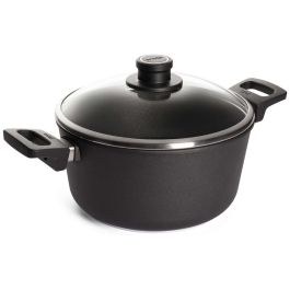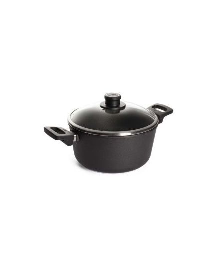 Χύτρα αντικολλητική από χυτό αλουμίνιο με γυάλινο καπάκι 24cm 4.5lt Titanium Nowo -124ILL- WOLL