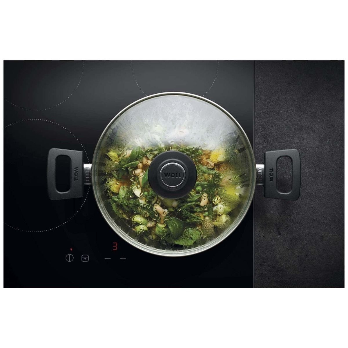 Χρησιμοποιώντας μια νέα μέθοδο παραγωγής, το κάτω μέρος του σκεύους είναι κατασκευασμένο από ειδικό ανοξείδωτο ατσάλι, με πατέντα ανεπτυγμένη στη Woll που έχει εφαρμοστεί σε όλη την επιφάνεια του κάτω μέρους κάθε σκεύους της σειράς Titanium Nowo. Η νέα γενιά των σκευών για επαγωγικές εστίες της Woll επιτρέπει την ταχεία θέρμανση φτάνοντας ακόμα και 300 °C σε μόλις 3 λεπτά. Η ομοιόμορφη ροη και κατανομή της θερμοκρασίας που επιτυγχάνεται στα σκεύη της Woll επιτρέπει την απορρόφηση του 100% της θερμικής ενέργειας που παράγεται στις επαγωγικές εστίες. Το επαγγελματικό μαγείρεμα με τα κατασκευασμένα από χυτό αλουμίνιο αντικολλητικά σκεύη της Woll κατάλληλα για επαγωγικές εστίες γίνεται τώρα πιο ασφαλές αλλά και εξοικονομεί περισσότερη ενέργεια.