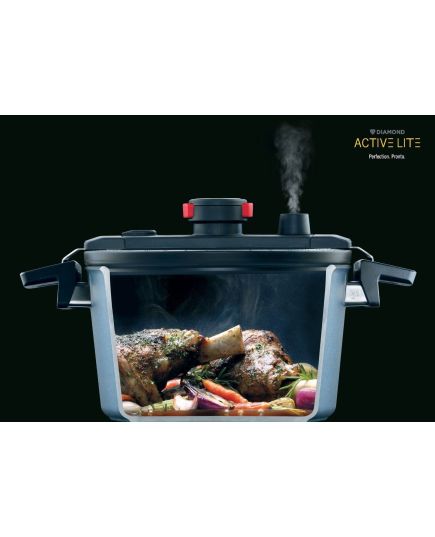 Κατά κανόνα, οι αντικολλητικές χύτρες Diamond Active Lite μπορούν να μειώσουν το χρόνο μαγειρέματος κατά 50% σε σύγκριση με τις συμβατικές μεθόδους μαγειρέματος ενώ χάρη στο μοναδικό σχεδιασμό τους, μπορείτε να αφαιρέσετε το καπάκι απο τη χύτρα ταχύτητας οποιαδήποτε στιγμή κατά τη διάρκεια του μαγειρέματος για να προσθέσετε υλικά και καρυκεύματα.