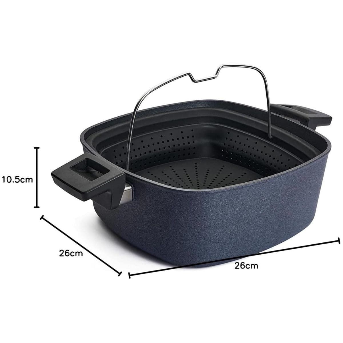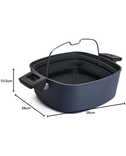 Χύτρα χαμηλής πίεσης αντικολλητική τετράγωνη από χυτό αλουμίνιο με ένθετο σιλικόνης 26x26cm 5.5lt Diamond Active Lite -1026-2-1DALI- WOLL