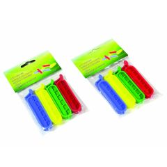 17014 (code) Κλιπς 3τμχ για σακούλες. Πλαστικό clips για σακούλες  πολύ πρακτικό, σε διάφορα χρώματα, σε συσκευασία blister. Σετ 3 τεμαχίων.