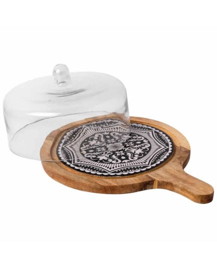 79707 (code) Πλατώ σερβιρίσματος ξύλου/πορσελάνης (Σετ) με χερούλι και γυάλινο καπάκι 36x27x17cm Morocco Black Prestige