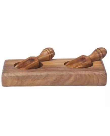 Ξύλινo σετ βάση και σέσουλες για αλατοπίπερο 4643191 Cosy & Trendy