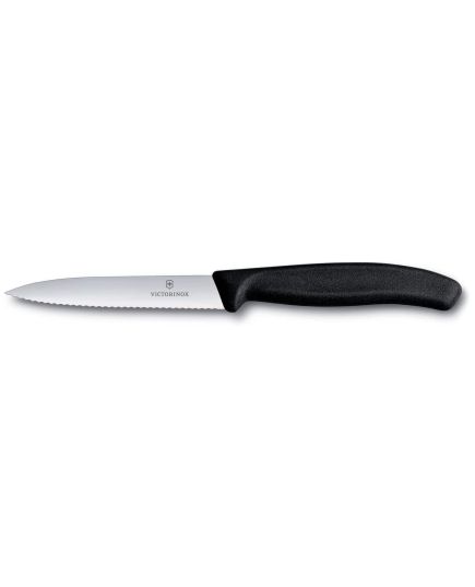 Μαχαίρι κουζίνας 10cm οδοντωτό μυτερό μαύρη λαβή Swiss Classic -6.7733- Victorinox
