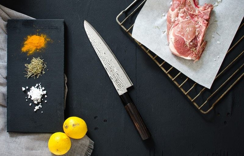 - Λάμα με 63 στρώσεις από δαμασκηνό ανοξείδωτο ατσάλι και πυρήνα από VG10
