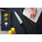 Η λάμα του Shippu Black είναι κατασκευασμένη από δαμασκηνό ανοξείδωτο ατσάλι, φημισμένο στους αιώνες για την αιχμηρότητα και ανθεκτικότητά του, αλλά και για την εντυπωσιακή όψη που δημιουργούν τα χαρακτηριστικά "νερά" του και κάνουν κάθε μαχαίρι κυριολεκτικά μοναδικό. Πιο συγκεκριμένα, ο πυρήνας της λάμας αποτελείται από το καινοτόμο γιαπωνέζικο κράμμα ανοξείδωτου ατσαλιού VG10, χαρακτηριστικό για τη σκληρότητά του χάρη στο κοβάλτιο που περιέχει, το οποίο περικλείεται από ξεχωριστά στρώματα δαμασκηνού ατσαλιού, ενισχύοντας έτσι τη σκληρότητα και την ανθεκτικότητα του μαχαιριού. Κάθε Shippu Black ακονίζεται στο χέρι από έμπειρους Γιαπωνέζους τεχνίτες και στις δύο πλευρές του στις 15°, προκειμένου να παραλάβετε ένα απόλυτα αιχμηρό μαχαίρι.